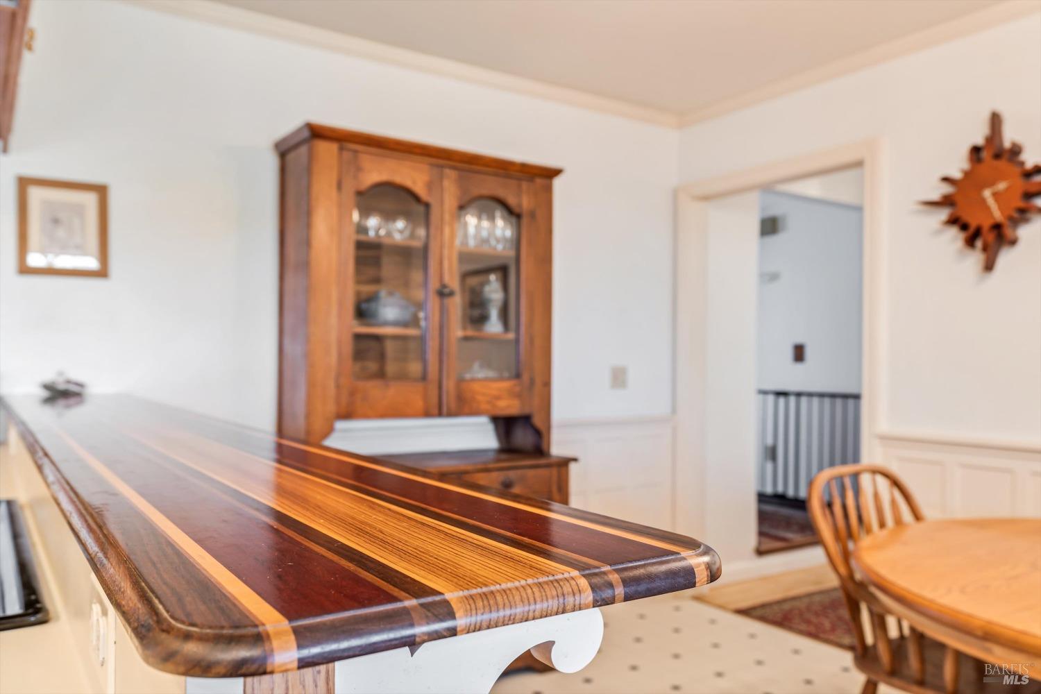 Exquisite craftsmanship elevates this beautifully updated 3BR/2BA Petaluma home, where custom woodwork and meticulous details set it apart. The owner, a Master Carpenter, transformed this home with handcrafted features, including a stunning red oak front door, reclaimed maple floors, and intricate oak built-ins. The kitchen boasts custom stained red oak cabinetry, a built-in corner hutch, an exotic wood bar top, and thoughtful upgrades like roll-out pantry shelves. The primary suite showcases custom-laid maple floors with cherrywood inlays, detailed moldings, and a spa-like bath with sapele mahogany cabinetry and quartz counters. The guest bath stuns with marble and granite flooring. A spacious covered patio, crafted from reclaimed Italian cedar, overlooks a backyard with fruit trees, garden beds, and a private gate leading to open space. Backing to Casa Grande High baseball fields, this home blends charm, quality, and an unbeatable location.